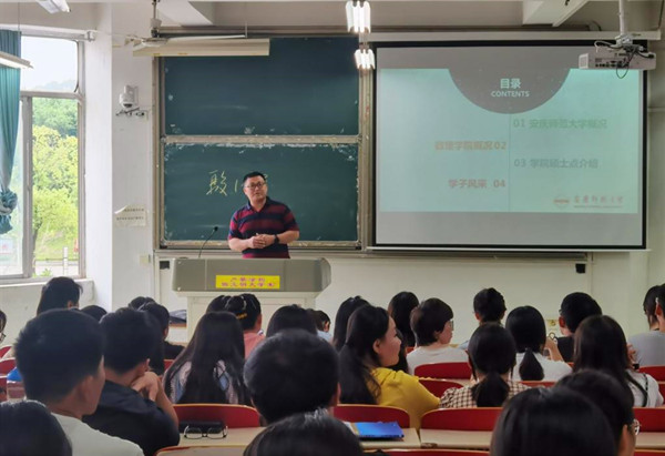 钟金标一行在淮南师范学院研究生招生宣讲会上,就永利官网基本校情、学位点、师资(导师)、培养模式、奖助体系、各类研究生招生政策、相关学科研究生教育的优势与特色进行详细介绍,并进行了导师面对面交流,发放了数理学院研究生招生宣传材料。本次宣讲会吸引了百余位同学参加,气氛热烈,学生踊跃提问,招生宣传小组对有意向报考永利官网的学生进行了深度沟通与交流。(撰稿、摄影:赵正俊 殷周平 审核:张海)