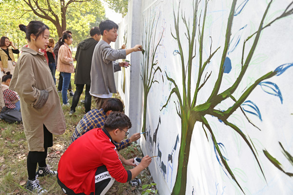 “画墙绘是发挥特长表达爱校感情的一种方式,以班级为单位,互相学习,把教室搬到校园的每一个角落,让学生积极参与学校的建设也是教育的一部分。以墙绘的方式让学生的作品给全校师生审视,可以促进他们的学习,学以致用,对他们也是一种鞭策。”美术学院党委副书记查国平说,希望这些墙绘可以成为一种特色,一道风景,一份回忆。(文/学生记者 邱焱平 图/学生记者 王艾林)
