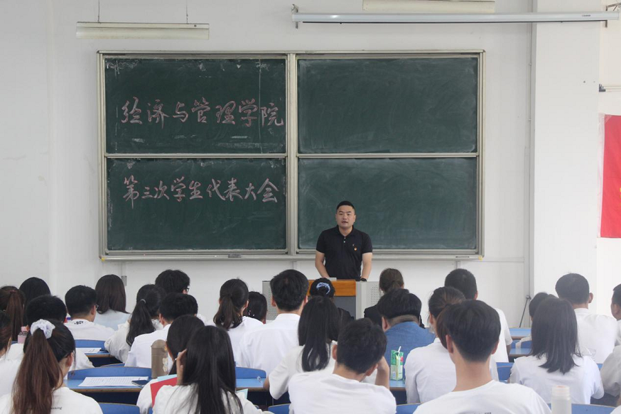 5月30日,经济与管理学院第三次学生代表大会在C108教室召开。学院党委副书记周毅、学院团委负责人和学院101名学生代表参加会议。