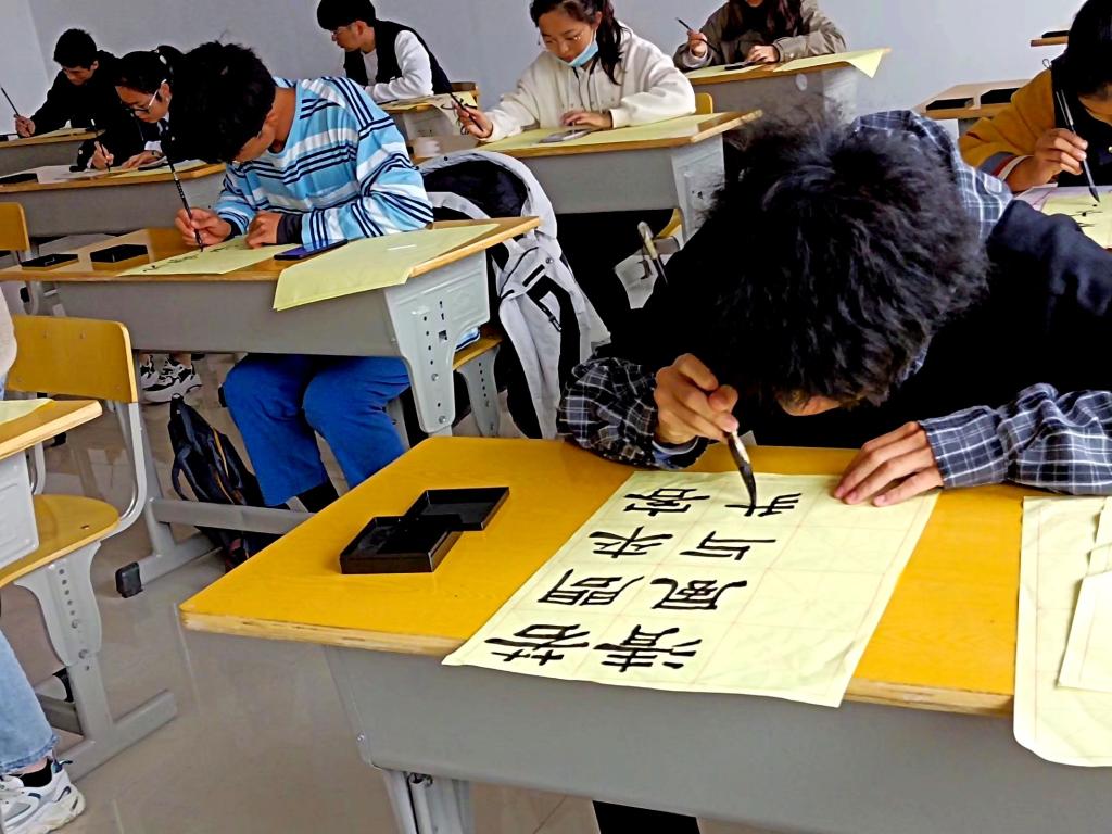 比赛中,伴随着悠扬的古风曲目和浓郁的墨香,同学们凝神运笔,挥毫泼墨,气氛紧张而热烈。笔墨飞舞间,一幅幅或娟秀柔美或遒劲有力的毛笔书法作品呈现在大家眼前。