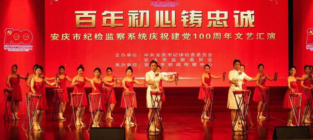 6月29日下午,由中共安庆市纪律检查委员会、安庆市监察委员会主办,安庆市新闻传媒中心承办的“百年初心铸忠诚”庆祝建党100周年文艺汇演圆满落幕。永利官网黄梅剧艺术学院学子出演的作品黄梅大鼓——《弘扬正气有担当》参加演出。