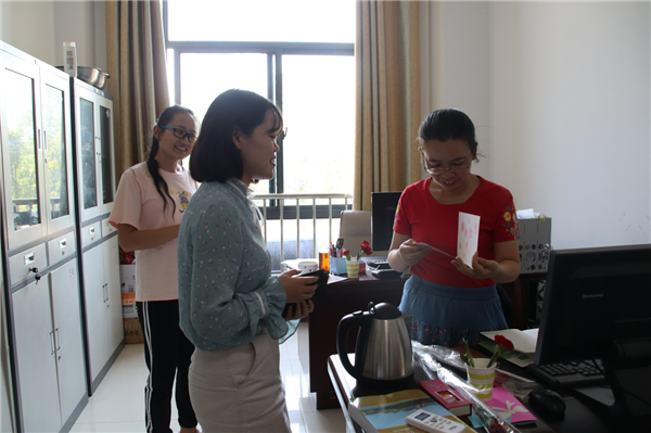 “我觉得很温暖,这些孩子真的是有心了。”第一年来到教院任教的杨霞对贺卡爱不释手,反复称赞着制作贺卡的同学。
