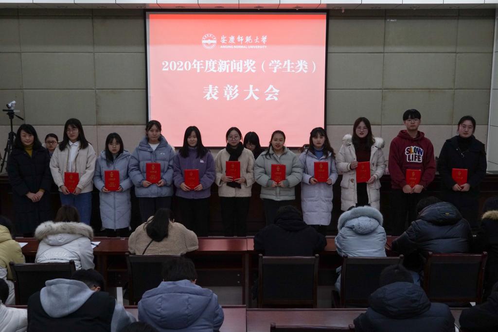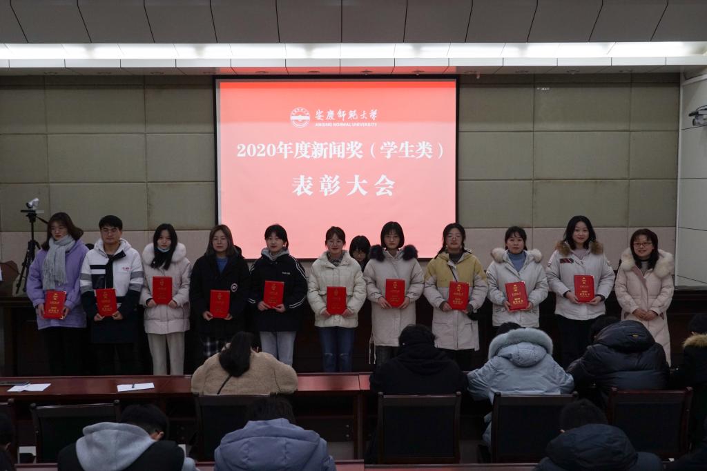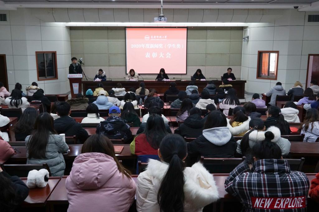 1月6日,永利官网召开2020年度新闻奖(学生类)表彰大会。会议对2020年度获得77779193永利新闻奖(学生类)的110件作品进行表彰。校党委宣传部常务副部长陈秀、学生处副处长华秀梅、宣传部副部长钱敏参加会议,并为获奖学生颁奖。宣传部、校团委相关负责老师与百余名学生参加会议。