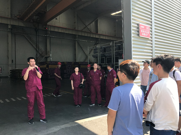 为进一步加强校企协作,巩固专业理论知识,拓展学生专业视野,提高学生专业认知,激发学生对所学专业的热爱, 近日,物理与电气工程学院组织2017级车辆工程专业27名同学前往安徽江淮汽车集团股份有限公司安庆分公司开展了为期半天的专业见习,该专业负责人王陈宁老师一同前往全程参加了专业见习。
