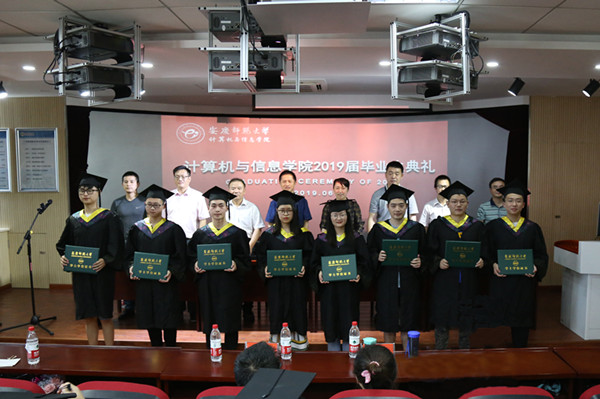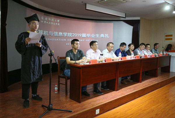近日,计算机与信息学院2019届学生毕业典礼在F411会议室举行。校党委常委、教务处处长苏本跃,学院党委书记陈银凤、院长王一宾及党政班子全体成员、各专业负责人、教师代表、毕业班辅导员以及全体毕业生代表160余人参加了典礼。典礼由学院党委副书记江伟主持。