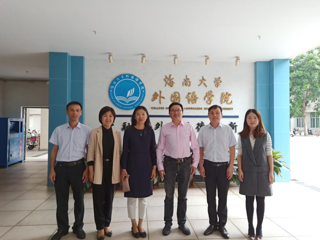 11月14日,外国语学院党委书记郝涂根带队赴海南大学外国语学院专题调研党建标杆院系工作,学院党委副书记夏斐等三人一行参加调研。