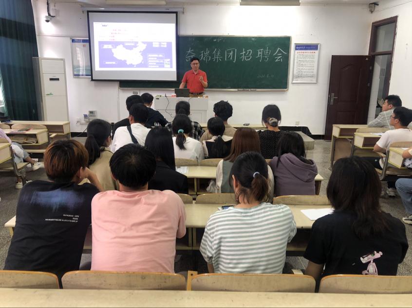 5月11日,传媒学院在文渊楼302教室举办奇瑞控股集团专场招聘会,招聘会由学院就业负责老师主持,50余名学生参加了此次专场招聘会。