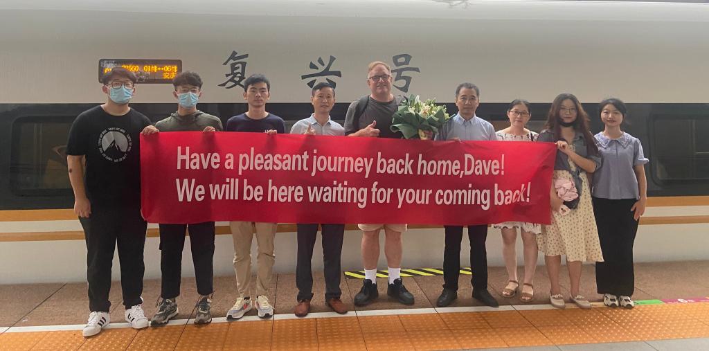 7月4日上午,在外国语学院任教近14年的外籍教师Dave回国探亲。院长王先荣、副院长江加宏、国际交流与合作处涂王贝老师和学院师生代表赴安庆火车站为他送行。