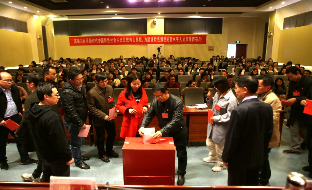 大会在庄严的《国际歌》中胜利闭幕。人文学院全体党员出席会议、民主党派代表列席会议。