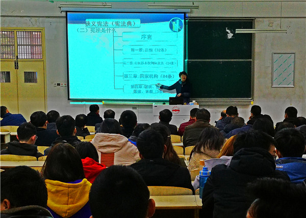为了使广大师生进一步增强法律意识,理解十九届四中全会提出的关于坚持和完善中国特色社会主义法治体系提高党依法治国依法执政能力的内涵,进一步维护宪法威严与提高懂法守法的行动自觉,11月27日下午,计算机与信息学院举办了“宪法宣讲”活动,永利官网法学院教授、安庆市普法宣讲员聂早早应邀为计算机与信息学院师生进行宪法宣讲,该学院教职工及90余名学生代表参加了活动。
