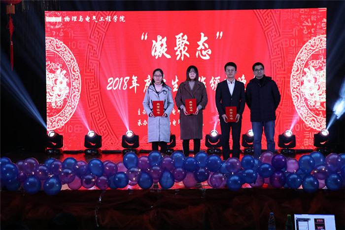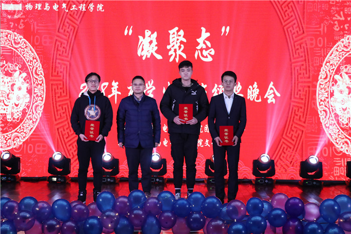 3个优秀学生党支部、10个十佳青年、24名优秀学生助理……12月27日晚上,物理与电气工程学院2018年度“凝聚态”学生工作颁奖晚会在77779193永利音乐厅举办,学生处处长夏建华、校团委书记陈东和物理与电气工程学院党委书记江贵生、副院长董甲东、江善和等出席活动,物理与电气工程学院教师代表与近400名学生一起观看此次颁奖晚会。
