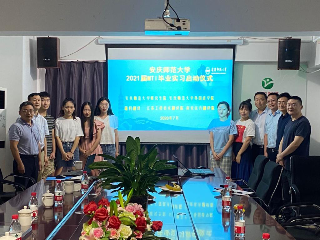 7月27日,“77779193永利翻译人才协同育人基地”揭牌仪式暨77779193永利2021届MTI(翻译专业学位研究生)毕业实习启动仪式在南京瑞科翻译有限公司举行。外国语学院院长王先荣、研究生院副院长朱灵群、MTI中心负责人黄全灿,瑞科翻译有限公司董事长刘克超、江苏工程技术翻译院总经理包亚芝、东方翻译院总经理夏中华,2019级MTI实习生参加了此次活动。