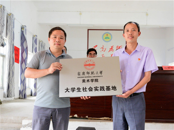 7月8日,美术学院党建共建基地暨大学生社会实践基地授牌仪式在安庆市望江县麦元中心学校举行,望江县教育局党委书记、局长曹结海,党委副书记、副局长陈良胜,望江县麦元中心学校校长袁犬应、副校长孙桂林,美术学院党委书记孙根华、副院长朱胜甲、党委副书记查国平等出席授牌仪式。