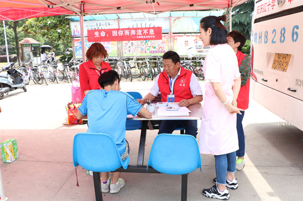 “生命,因你而奔流不息。”现场悬挂的横幅引人瞩目,负责人程振风说:“大学生对献血活动的参与度还是很积极的,学校每年都会组织多次献血活动,协会也会将这一传统延续下去,为社会贡献我们的力量。”(文/学生记者 胡惠 汪习习 图/学生记者 赵蝶 徐孟云 王艾林 赵文轩)