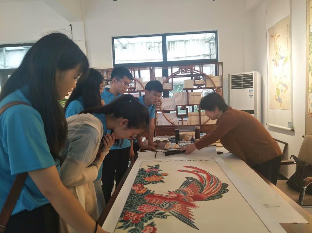 观察团在此次小岗村之行中还有许多意外收获,队员们接触到了“凤阳一绝”的花鼓和已有六百多年历史的凤阳凤画等一系列民间非物质文化遗产。凤阳凤画在民国时期曾一度绝迹,新中国成立后仅有少数几个继承人。随着改革开放的深入,新老凤画家们意气风发。如今,凤阳凤画正以绚丽多彩的风姿进入千家万户。凤画继承人为我们现场作画,展示了凤画专属绘画技巧,弘扬了优秀的传统文化,让队员们大开眼界。