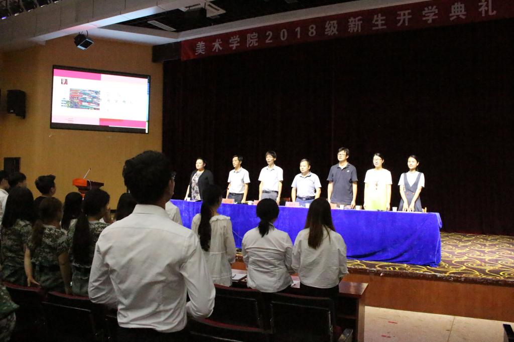 9月19日晚,美术学院举行2018级新生开学典礼,该院党政领导、教师代表、新生辅导员、老生代表及2018级全体新生参加了典礼。