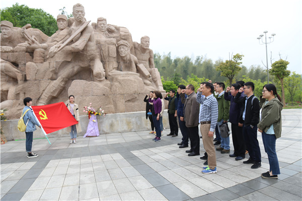 “我志愿加入中国共产党,拥护党的纲领,遵守党的章程……”上午十点,19名党员站在安徽省红色区域中心革命纪念碑旁,重温入党誓词,庄严而肃穆。在讲解员的带领下,一行人又参观了安徽省红色区域中心革命纪念馆,纪念馆中陈列着珍贵文物、照片等,展示了革命先烈们浴血奋战的革命过程。参观之后,环境科学专业2016(2)班王帆颇有感触:“看到革命先烈的爱国事迹,很受鼓舞。我们应该将革命先烈的爱国精神和奉献精神一直传承下去,做一个心中有党、爱国奋进的大学生。”