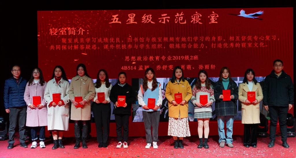 颁奖环节, 10名在道德示范、学风创优、文体素质、创新实践等方面取得荣誉的先进学生受到嘉奖,该院老师为他们颁发奖状并与其合影留念。