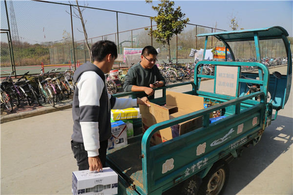 笔记本、纸巾、垃圾袋……11月18日至22日,45名学生开展时长五天的商品分销赛,从生活用品到学习用具,45人相互分工,轮流负责拿货,然后进行各自的商品销售,学生们可以从线上预订,然后享受送货到宿舍的服务。