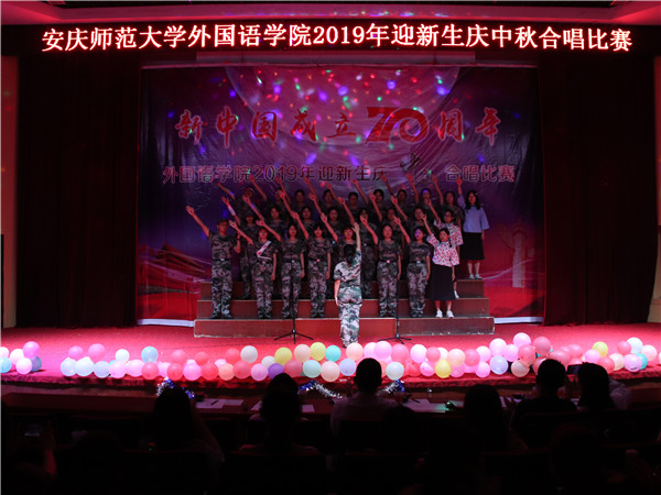 “我的未来不是梦,我认真的过每一分钟,我的未来不是梦,我的心随着希望在动。”9月12日晚,外国语学院在图书馆东报告厅举办2019年“迎新生庆中秋”合唱比赛。校团委书记陈东、外国语学院副院长王先荣、外国语学院党委副书记夏斐等老师观看了比赛,2019级10个班级共300余名新生参加了比赛。师范英语(5)班《映山红》、商务英语(2)班《我的中国心》获得一等奖。
