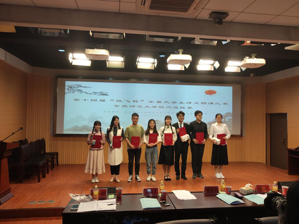 最终,教师教育学院的陈芷怡、胡汉晨、音乐学院的刘蕊荣获一等奖,物理与电气工程学院的王晓琦、传媒学院的李玉衡、柯雨绮荣获二等奖,文学院的许慧娟、音乐学院的袁荪荣获三等奖。比赛结束后,评委老师对参赛选手的热情、参赛形式的多样以及团体间的默契配合给予了肯定,并对选手参赛选取的作品、发音、朗诵技巧等方面提出中肯建议。