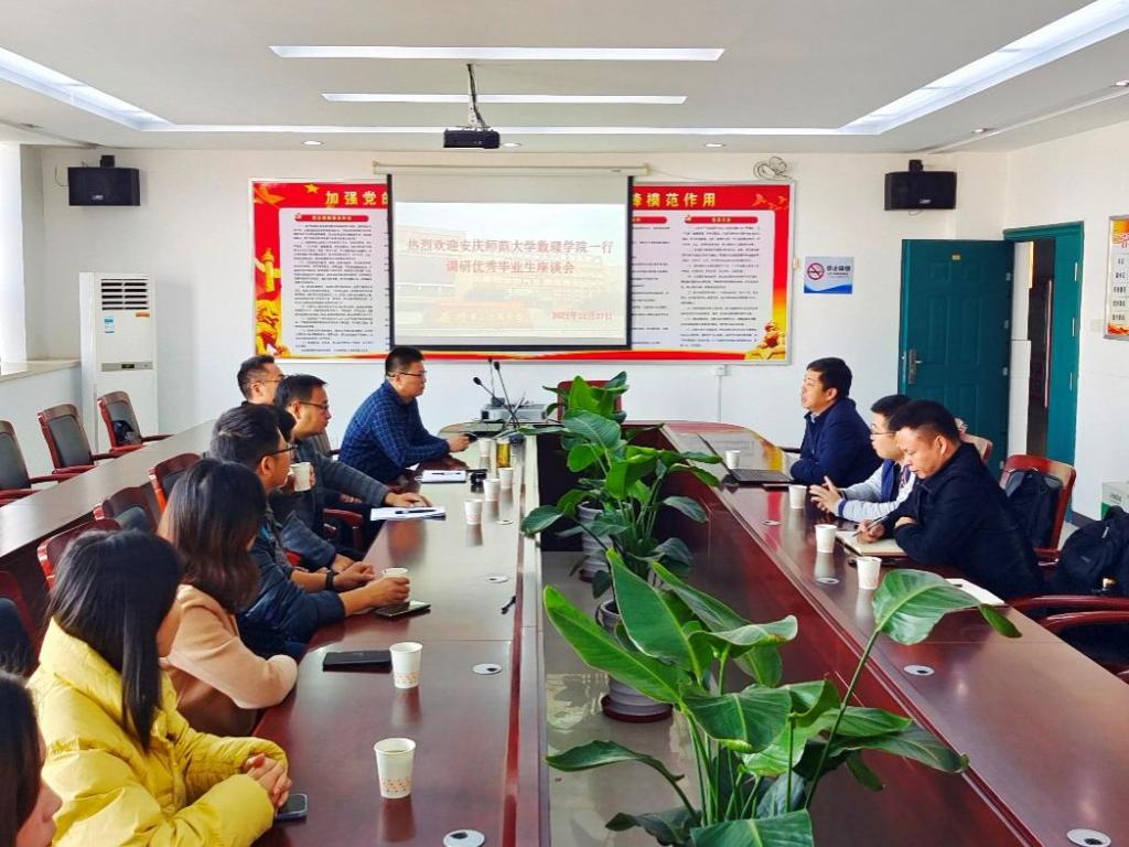 为进一步加强与优秀毕业生交流合作,做好校友工作建设,推进数理学院专业发展和就业工作,11月27日,数理学院副院长张海一行前往芜湖市进行毕业生校友调研,芜湖市弋江区教育局党工委副书记詹玉坤及数学系优秀校友代表南陵一中王金忠、万胜,芜湖市第一中学张灿、陈正兰,芜湖市中江中学余颖,繁昌一中王爱梅,芜湖市利民路小学陶雨涵参加座谈,座谈会由数学系2003届校友、芜湖市第二十五中学副校长梁远久主持。
