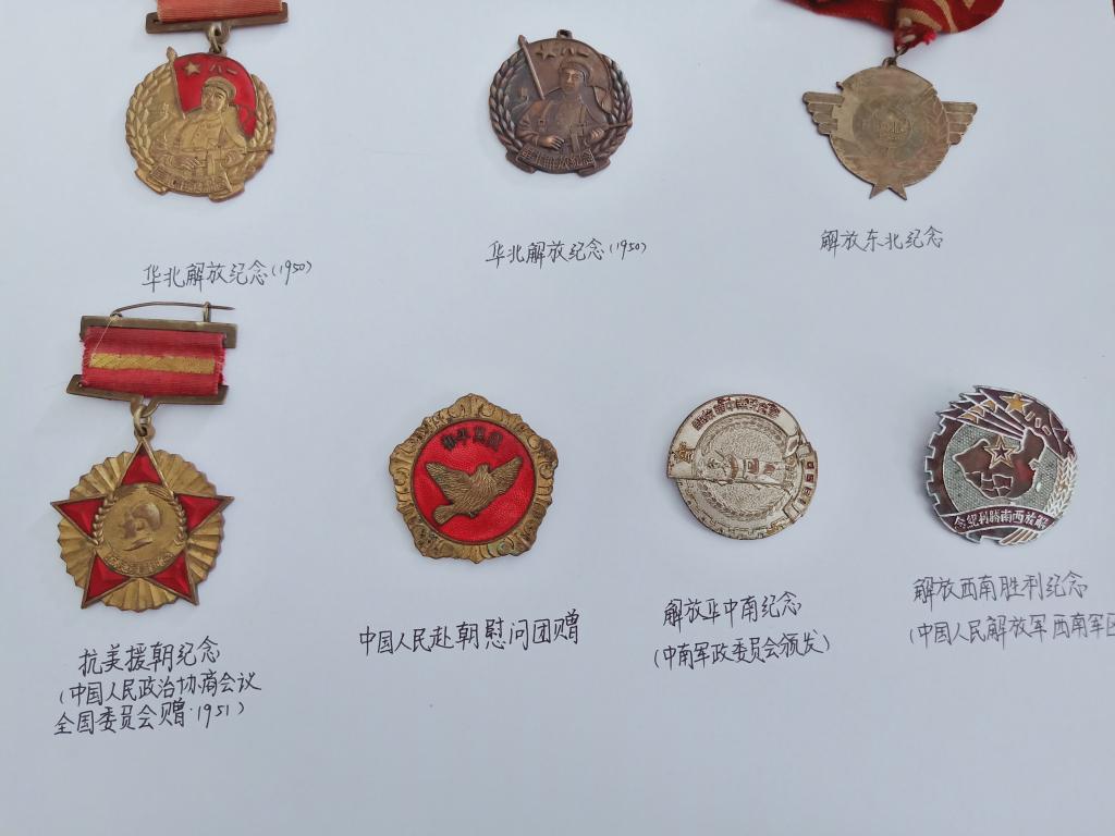 (图为朱明山同志在战争期间被授予的军功章)