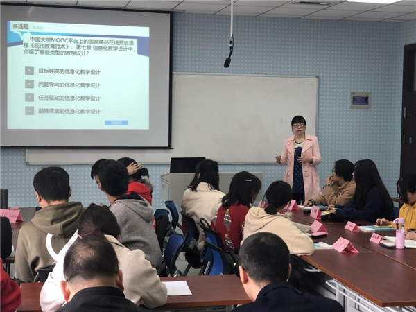 为深入贯彻落实全国教育大会和新时代全国高等学校本科教育工作会议精神,深化课堂教学改革,打造“金课”,2019年3月13日上午,教育技术学教研室在B105教室开展教研活动。此次教研活动围绕刘萌萌老师的“混合式教学”展开。