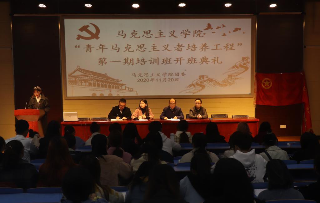 11月20日,永利官网马克思主义学院第一期“青年马克思主义者培养工程”培训班(以下简称“青马班”)在文津楼D111报告厅举办了开班仪式。学院党委书记金文斌、团委副书记和辅导员老师以及“青马班”学员、安庆一中老师及学生代表等89人参加了开班仪式。