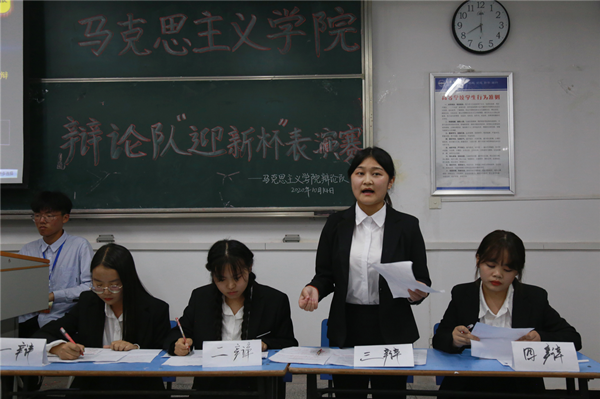 双方辩手旁征博引、诙谐幽默,赢得了现场观众的阵阵掌声。思想政治教育专业2019(4)班辩论队负责人杨同同表示:“这一场主要是为了辩论队招新的表演赛,让新生能够对辩论各方面有一个更加深入的了解。我们会挖掘本院有潜力的辩手进行培训,后期会举办队内赛进行训练并与其他学院相约友谊赛。”(撰稿:学生记者 吴德慧 徐杏玉 摄影:学生记者 徐辉浩 许如怡 齐世冉 胡蝶 审核:钱敏)
