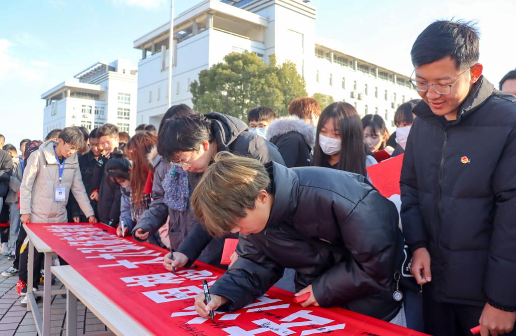 学院还在敬敷广场设有宪法知识图片展,三大食堂、菱湖校区都有宣传宪法和横幅签字的活动,帮助同学们更好的了解宪法。