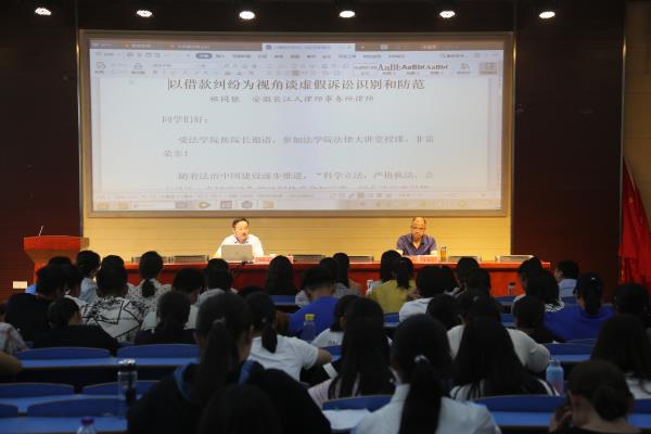 9月25日,安徽长江人律师事务所祖同银律师应邀莅临法律实务大讲堂,以“以借款纠纷为视角谈虚假诉讼识别和防范”为题作专题讲座。法学院部分教师、全体2019级法律硕士研究生和2018级部分本科生共160余人聆听了报告。院长焦少林教授主持了讲座。