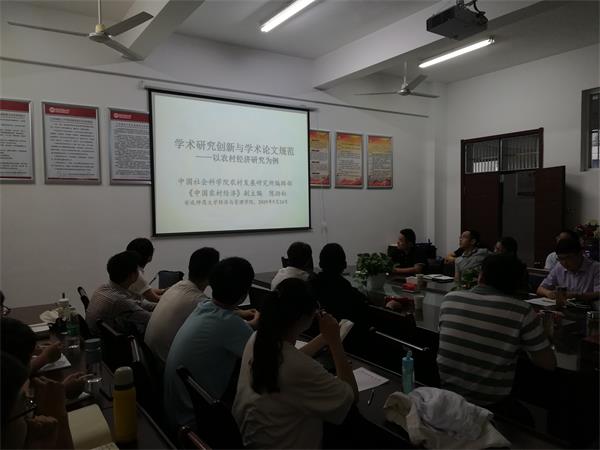 5月24日下午,应经济与管理学院邀请,中国社会科学院农村发展研究所、《中国农村经济》副主编陈劲松研究员在C楼会议室做了题为“学术研究创新与学术论文规范——以农村经济研究为例”的学术报告,该院中青年教师与17、18级统计学研究生聆听了讲座,讲座由经济与管理学院副院长黄先军教授主持。