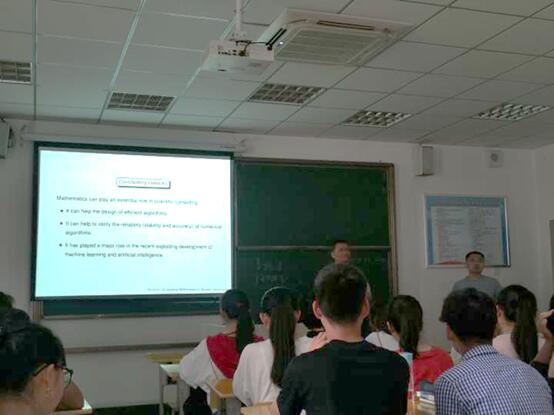 舒其望教授从快速傅里叶变换、高维线性方程组的求解等几个大家熟悉而又有代表性的例子入手,阐述科学计算中数学在减少算法的时间复杂度、提高计算效率等方面的关键作用,接着通过历届SIAM/ACM奖得主大多为数学家的介绍进一步展示数学在科学计算中的重要地位,最后总结指出,现在火热的人工智能在发展中尚有很多问题亟需数学来解决。报告深入浅出,语言生动,让同学们真切的感受到数学的巨大作用,从而激发了大家学习数学的热情。