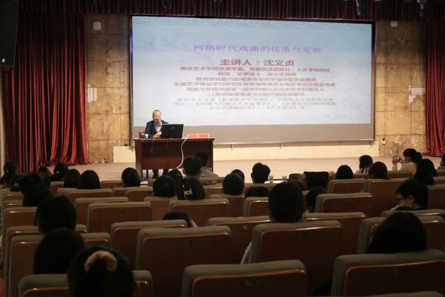 讲座中,沈义贞教授立足于网络时代的机遇与挑战,重点对地方戏曲文化如何走出地方、中国戏曲文化如何走向世界这些理论与现实问题进行了解读与分析。沈教授认为,随着网络时代的到来,传统戏曲的传承与发展既面临前所未有的机遇,也面临前所未有的挑战。一方面,中国传统戏曲要想走出国门、步入世界舞台,必须利用好网络这一新的媒介与平台,要想真正让世界接受中国戏曲文化,我们要对中西文化与艺术精神的共性与个性有着精准的判断与分析;另一方面,地方戏曲文化要想走出地方,迈向全国,一定要处理好地方区域文化与国家主流文化、传统思想与时代精神等系列问题。对于黄梅戏来说,黄梅戏艺术的传承与发展要定位好黄梅戏艺术的文化属性。与其他剧种相比较,黄梅戏的传统剧目更多表现的是中国人民对美好生活的向往与礼赞,极富喜剧精神,这是广大观众之所以喜爱黄梅戏的深层原因之一,也是自己之所以热爱黄梅戏的内在动因;再者,网络时代对大学的学科专业建设、课程体系建设及课堂教学等提出了新要求。我们要紧抓网络时代的机遇,进一步完善实践类课程与理论类课程、艺术类与文化类等课程的体系化建设及核心课程的“金课”打造。