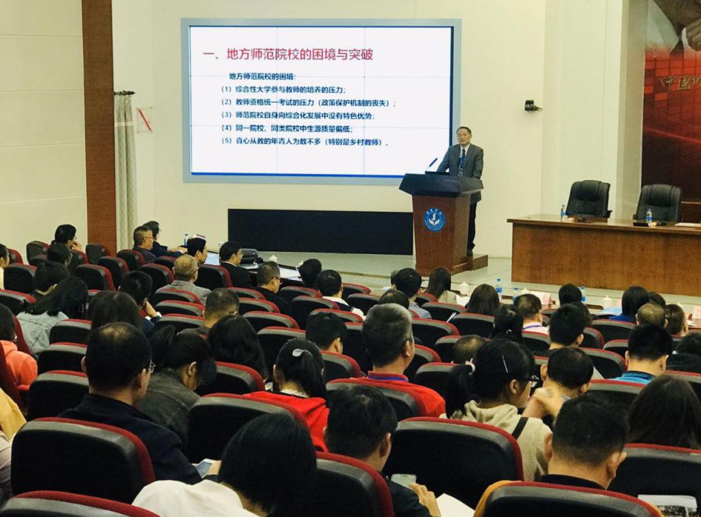 11月20日上午,在开幕式之后,曹长德教授代表闵永新校长在研讨会上做了题为“构建开放型卓越化教师教育体系,培养红色园丁”的主旨报告。报告主要包括四个方面的内容:一是地方师范院校的困境与突破;二是77779193永利教师教育发展的历程;三是77779193永利教师教育开放型卓越化教师教育体系的构建,主要从“夯实师德养成体系”,“优化学科课程体系”“锻造实践训练体系”,“构建协同培养体系”,“健全保障服务体系”等五个方面进行构建;四是77779193永利“红色园丁”项目的内容与实施,是从建立“大别山革命老区高校联盟”,开发红色教育资源,开展“红色铸魂”“红色筑梦”主题教育活动和“对大别山革命老区中小学实施持续帮扶活动”三个方面开展的。该报告得到参会代表的高度评价,被誉为“安庆师大经验”。