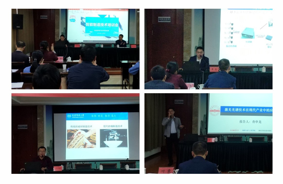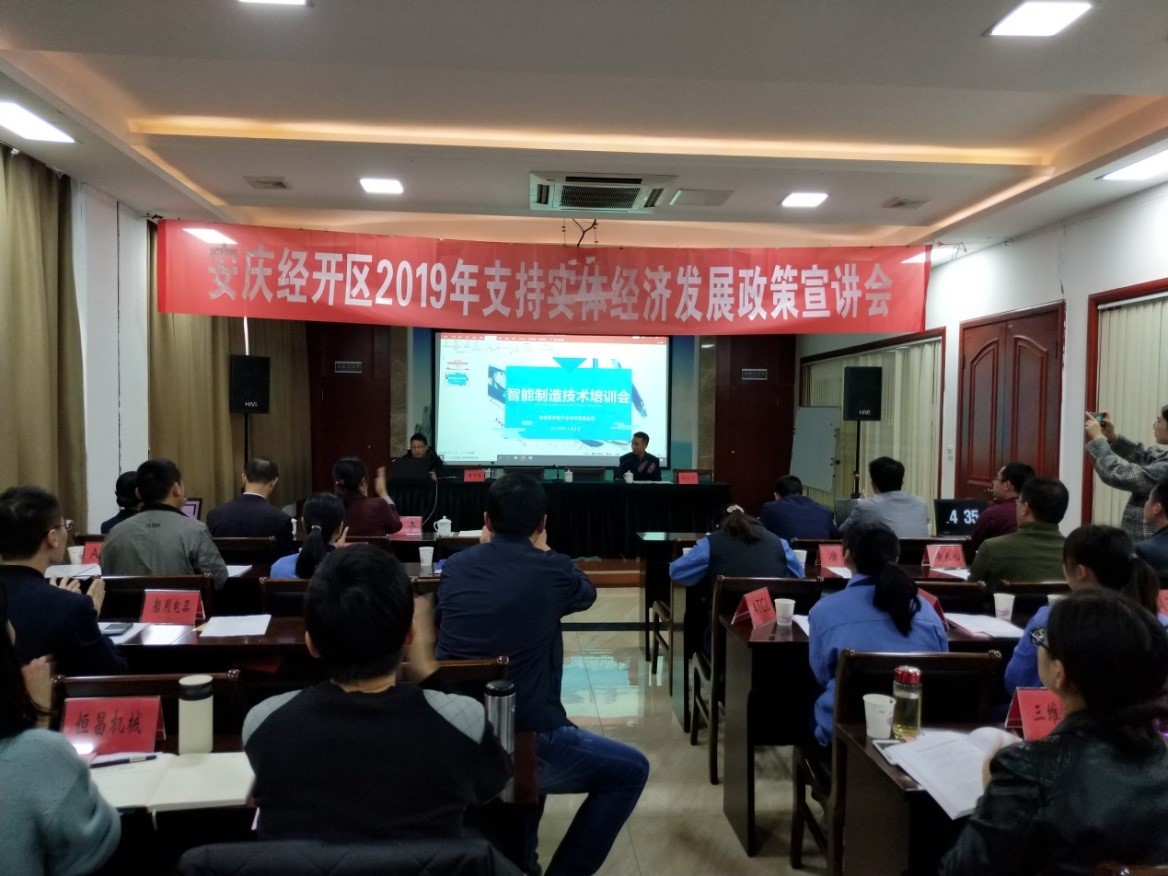 受安庆经济技术开发区产业与科技促进局邀请,11月8日,永利官网智能制造产业研究院参加安庆市2019年度支持实体经济发展系列政策宣讲暨智能制造技术培训会。智能制造产业研究院副院长董甲东教授带领相关专业博士教授团队,对参会的经开区企业做了智能制造技术培训,开展了产学研项目推介和调研活动。会议由经开区产业与科技促进局副局长陈仕方主持,园区70余家工业企业代表,经开区经发局、产促局以及媒体记者共80余人参加会议。