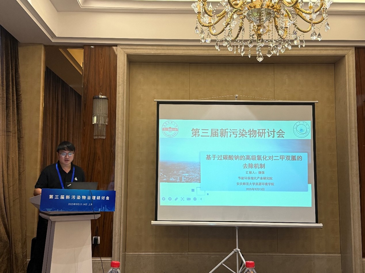资源环境学院汪德进教授担任“抗生素污染的源头控制与处理技术创新”分会场共同召集人。魏强副教授受邀参会并在该分会场作了题为“基于过碳酸钠的高级氧化对二甲双胍的去除机制”的学术报告,系统阐述了二甲双胍在过碳酸钠体系中的反应机理与转化规律、路径调控及副产物毒性评估等关键科学问题,引起了与会专家的广泛关注和高度评价。